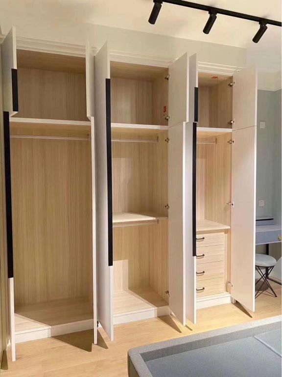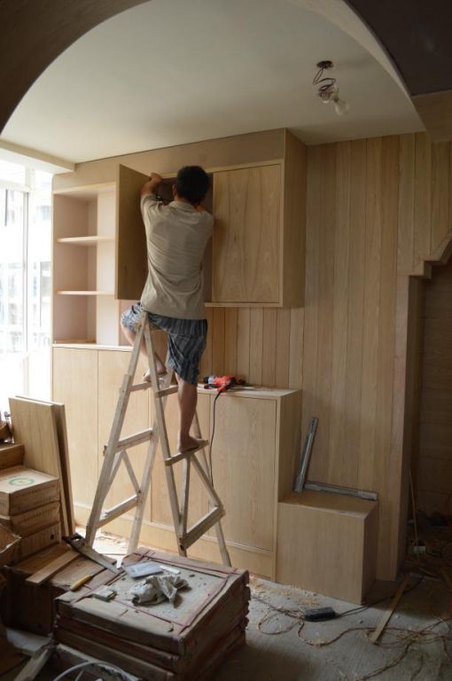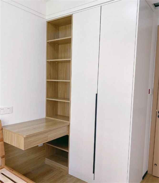 而木工打柜子,直接減少了眾多繁瑣的步驟,只需要自己購買板材和輔材,讓木工在家里現(xiàn)場打即可,用時(shí)大概十天左右。
